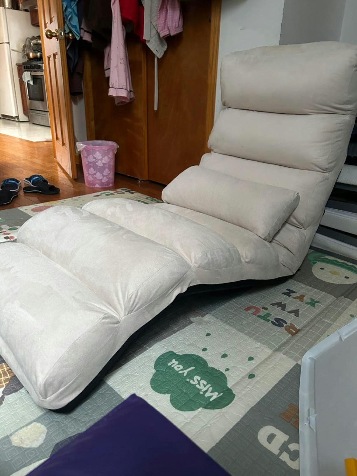 I bought this floor chair to use at my workplace. Hoping to take a nap during the lunch breaks. Previously, I used to lie down on the desk with a regular chair. Since getting this floor chair, I find resting much more comfortable. It requires no installation and can be adjusted into different positions.