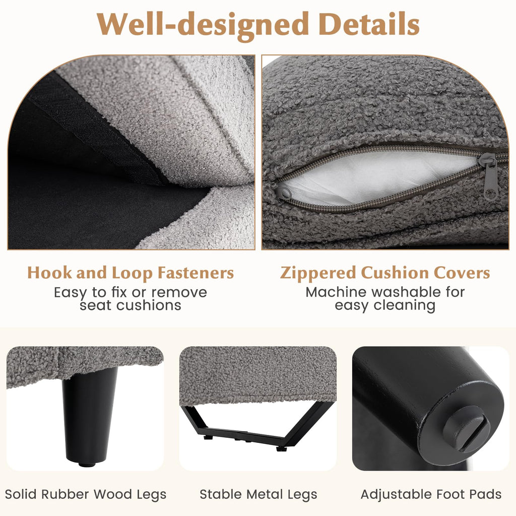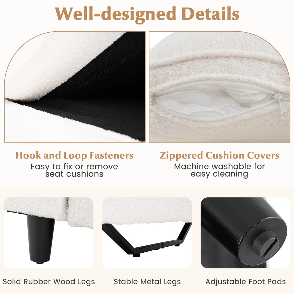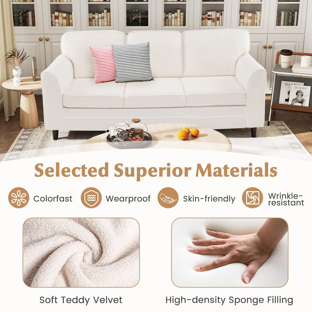 Indulge in ultimate comfort with our luxurious 3-seat sofa, crafted with plush teddy velvet for a touch of elegance. Enjoy ample seating space, perfect for lounging or entertaining guests during movie nights and gatherings. The ergonomic design ensures optimal support for your body, reducing daily stress and enhancing relaxation. With a sturdy structure and adjustable foot pads, this sofa promises long-lasting durability and stability. Cleaning is a breeze with machine washable cushion covers and easy reattachment with hook and loop fasteners. Elevate your living space with this stylish and comfortable sofa couch that combines both luxury and practicality.