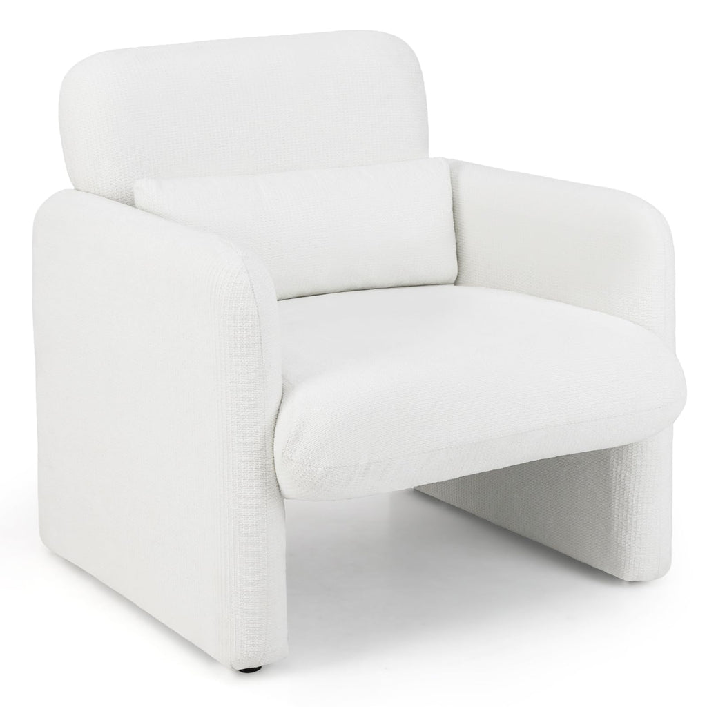 Featuring a 24”W x 24”D spacious seat, the single sofa chair allows you to sit comfortably in any position, whether you are reading magazines, watching TV, playing games, or lounging. The luxurious chenille fabric upholstery is both enduring and friendly to your skin, while the resilience sponge and S-shaped springs ensure a comfortable sitting experience. It also provides additional lumbar support with a PP cotton-filled lumbar pillow, helping you relieve your fatigue. Thanks to the widened legs and anti-slip foot pads, the chair stands firmly on the ground. Styled in a simple, elegant white, the versatile upholstered armchair blends seamlessly with any decoration, which is perfect for living rooms, bedrooms, or home offices. Assembly is a breeze.