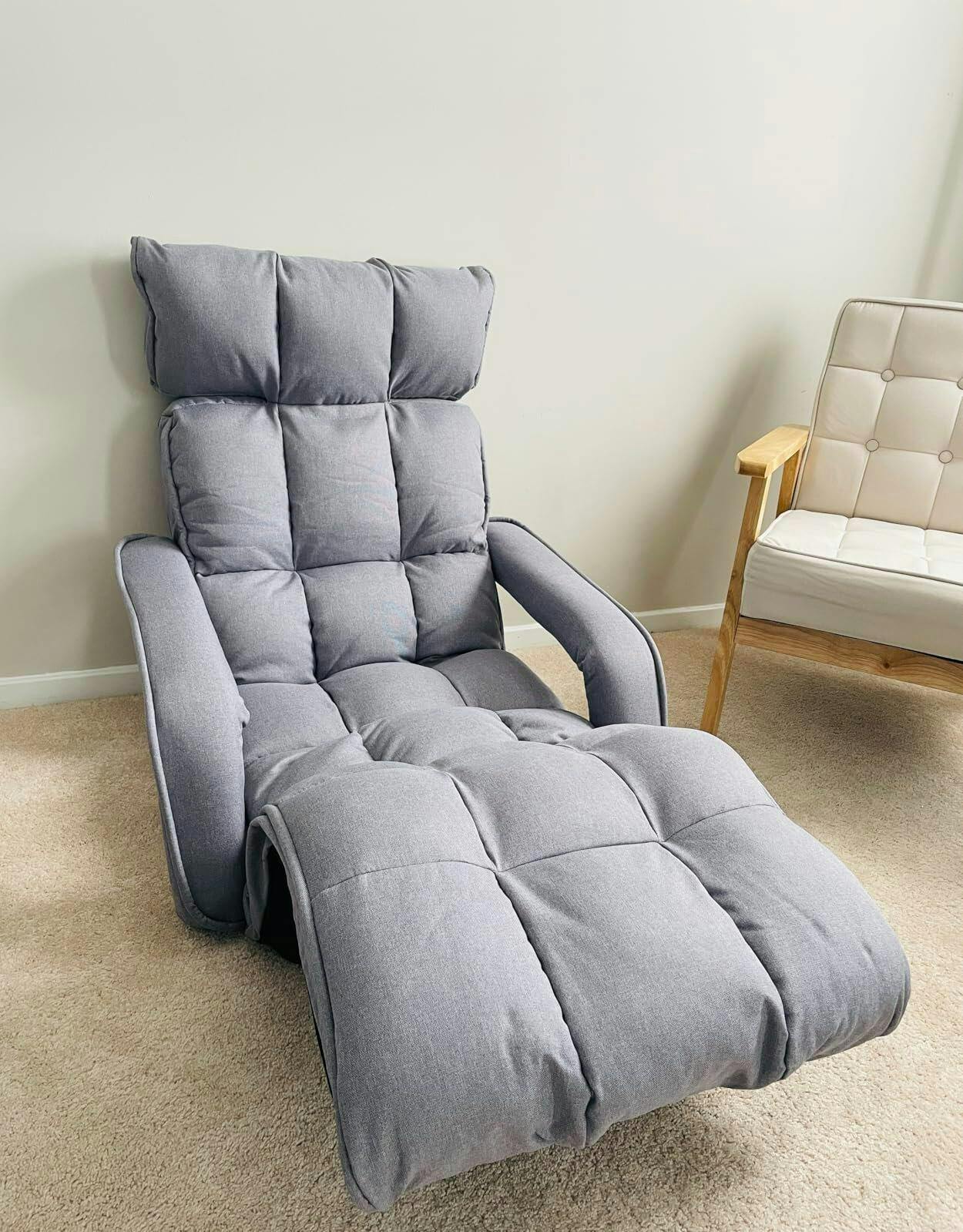 - Adjustable Chaise Lounger: The headrest, backrest, and waist part are adjustable, each with 6 adjustable levels, and the footrest has 8 adjustments. According to your different needs, you can pull the armrests to adjust the backrest to a floor chair for reading, a chaise lounger for relaxing, or a single bed for napping.