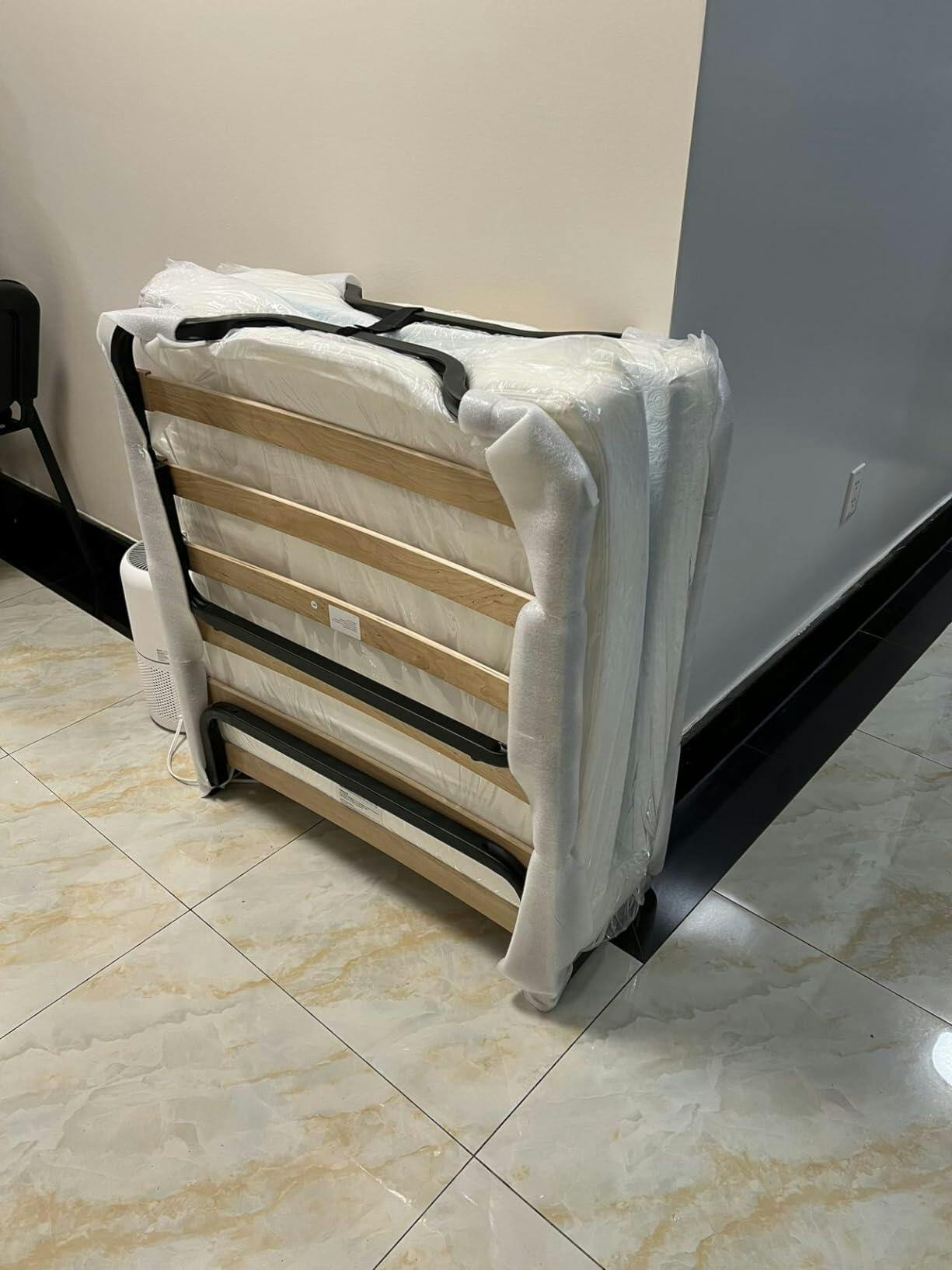 - Metal Frame & Solid Wood Slats: The folding bed distinguishes itself with a strong metal structure that supports up to 490 lbs weight & is fitted with anti-slip foot pads for better stability. More, it contains 15 birch wood slats, further ensuring no squeaks or creaks.
