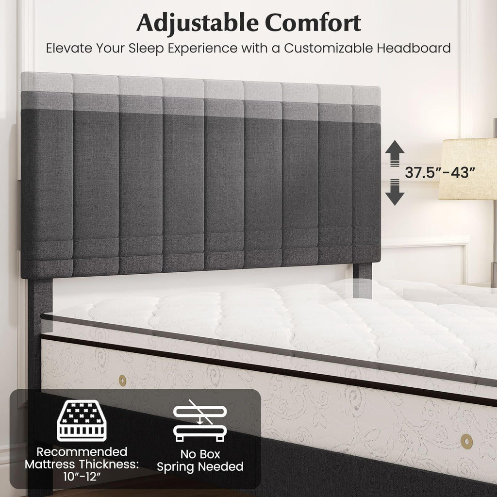 Adjustable headboard with 3 height settings: 37.5", 40", 43.5"