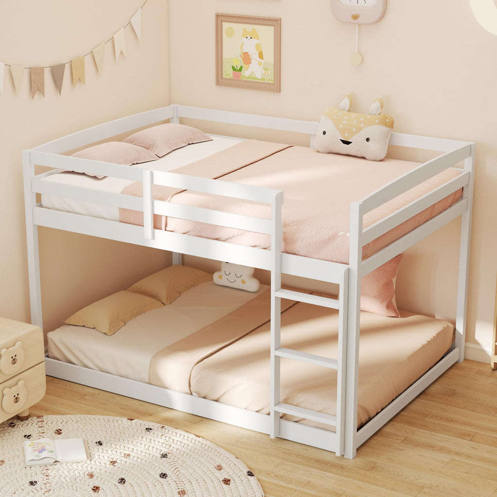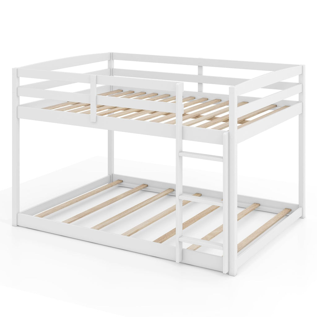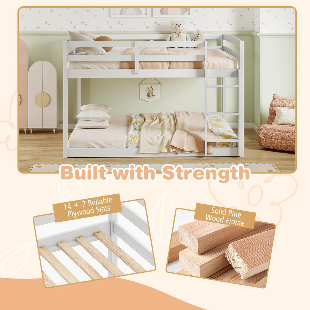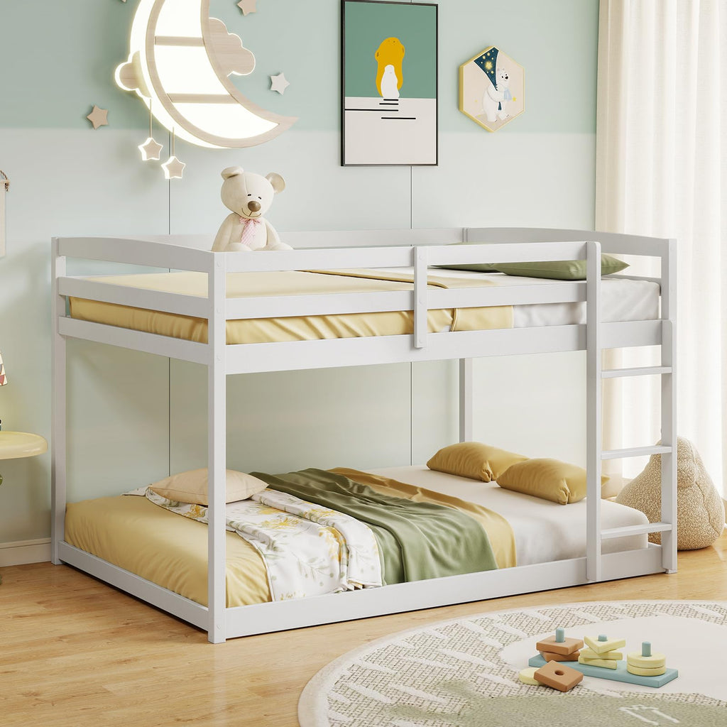 Description Efficiently utilize sleeping space with this full over full bunk bed! Crafted from solid wood frame and reliable plywood slats, this kids bunk bed is built to last. Safety is a key feature of this bed, boasting full-length guardrails on the upper bunk and a secure ladder for effortless access. Attention to details. The anti-toppling kits enable you to anchor the structure firmly to the wall. The low-profile design enhances accessibility for younger users. Whether for children or adults, the wooden bunk bed offers a space-saving solution that prioritizes comfort and safety in any room.