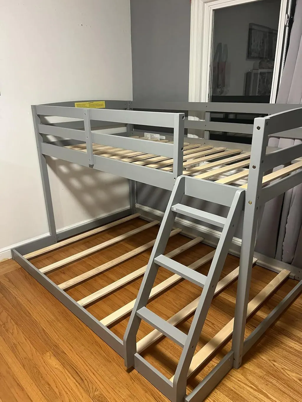 The twin over full low bunk bed promotes independence and builds confidence as kids can easily get in and out. Crafted from solid wood frame, this bunk bed ensures durability and stability. Besides, the plywood slats for mattress support across both levels, eliminating the need for box springs and providing a firm foundation. Safety is a priority with full-length guardrails on the upper bunk and a built-in ladder for easy and secure access. Additionally, the twin size top bunk and full size bottom bunk optimize vertical space. This bunk bed is an ideal choice for siblings sharing a room, as well as for hosting sleepovers or accommodating guests.