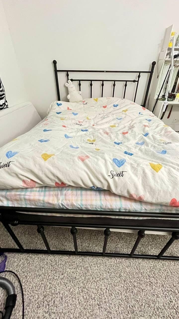 Elevate your bedroom with our exceptional heavy-duty metal bed frame that combines durability, style, and functionality. Expertly crafted with 6/9 supportive legs, this sturdy frame boasts a weight capacity of 660/1100 lbs, offering reliable support for a restful night's sleep. Say goodbye to the hassle of box springs with the innovative Metal Slats Support system, providing a solid foundation for your mattress. The industrial-style headboard and footboard add a touch of sophistication, creating a focal point in your bedroom decor. Enjoy enhanced stability and durability with the wobble-free design and anti-slip foot pads that not only safeguard your floors but also ensure a secure sleeping environment. Maximize your storage options with 12.5” of clearance under the bed, perfect for stowing away seasonal bedding, luggage, and more. Effortlessly maintain cleanliness with easy access for sweeping robots, making cleaning a breeze. Compatible with mattresses ranging from 8” to 12”, this versatile bed frame suits a variety of decor styles and preferences.