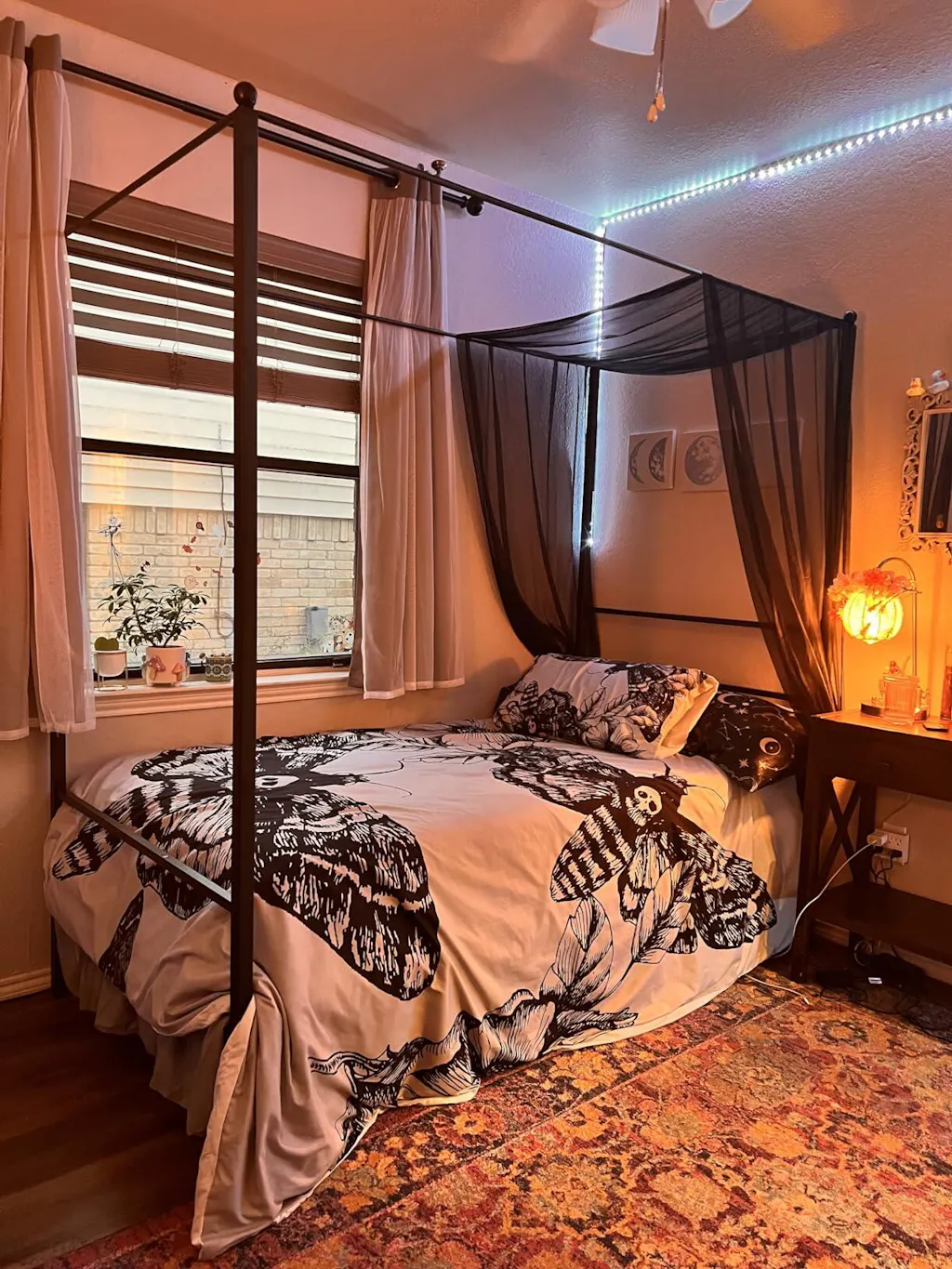 - Unique Canopy Design: With the unique canopy, our platform bed frame can attract your attention at first sight. You can hang mosquito nets or draperies on the canopy to add functionality and romantic ambiance to your room. At the same time, the black metal frame adds a sophisticated touch.
