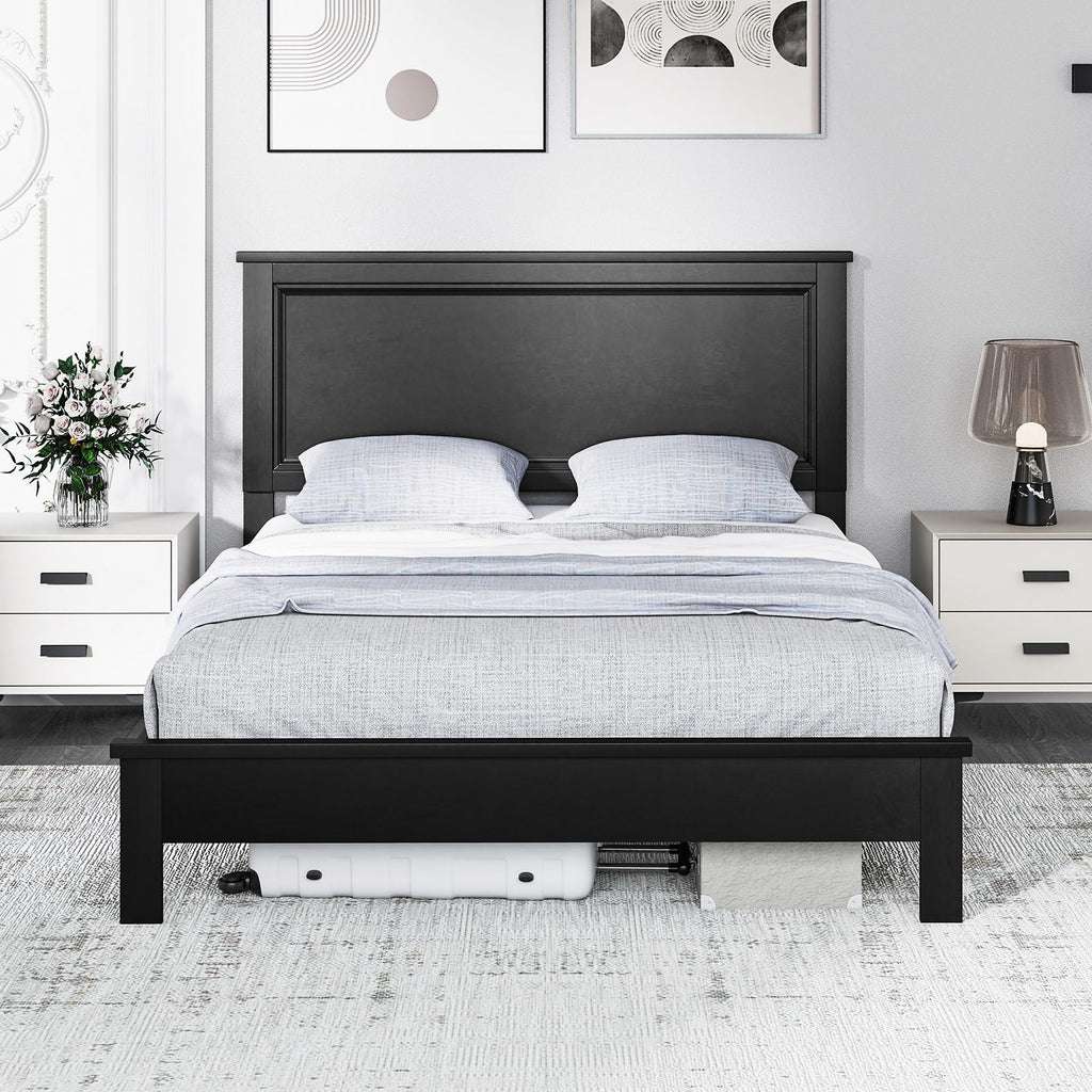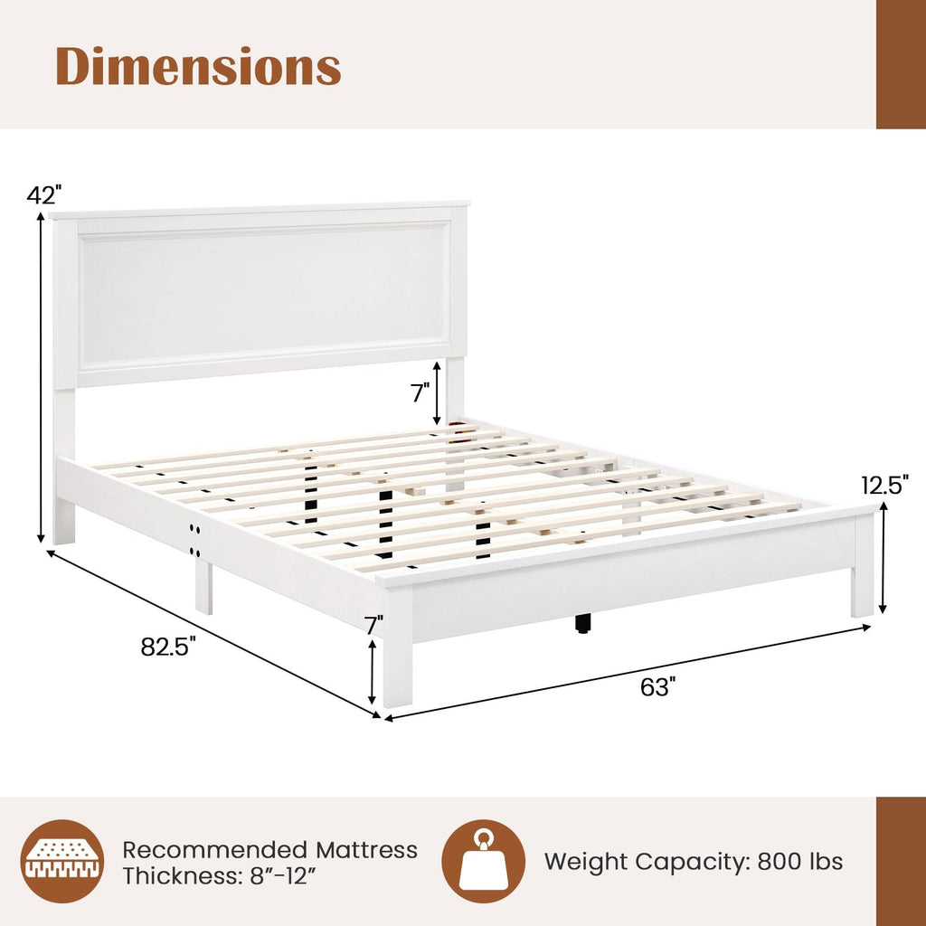 Features: Built to last with high-quality rubber wood Exquisite workmanship and sleek finish offers a fine touch Constructed with 12 thickened slats for reliable support No box spring needed and holds up 8”-12” thick mattress Embedded design can keep mattress in place Tight connection to reduce noise and squeaks Ample under-bed space can benefit floor cleaning Offer an efficient storage solution for shoes, storage boxes, and suitcases Headboard to provide adequate back support while enhancing the aesthetic appeal