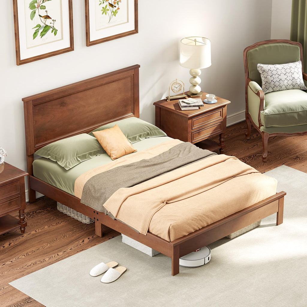 Solid Wood Construction: Crafted from high-quality rubber wood, this bed frame offers reliable, long-lasting performance that resists warping and daily wear. The well-treated surface is splinter-free, offering a comfortable touch and chic look.