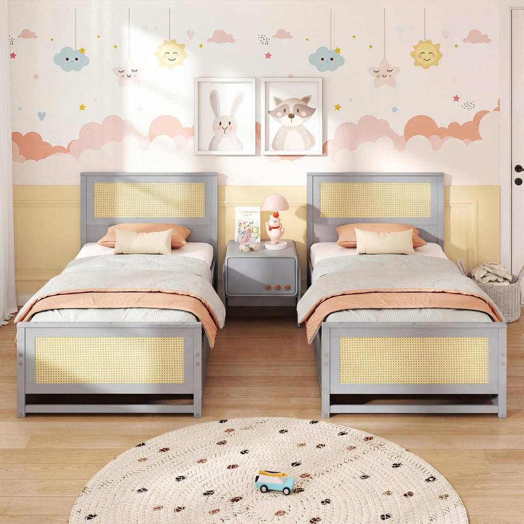 Elevate your bedroom with this stunning Boho rattan bed frame, featuring gorgeously handwoven headboard and footboard accents for a chic touch of warmth and style. Designed with 2 roomy, easy-glide drawers, it keeps your essentials neatly stowed; and the clever design ensures easy opening of drawers, not like those with no space for nightstands. Robust solid wood legs and reinforced slats ensure reliable, squeak-free support, no box spring required. The fully enclosed base ensures a sturdy and clutter-free foundation, while the recessed platform keeps your mattress snugly in place. Transform your space with this blend of organic beauty, smart storage, and lasting durability. Bring home the trendsetting comfort you deserve!