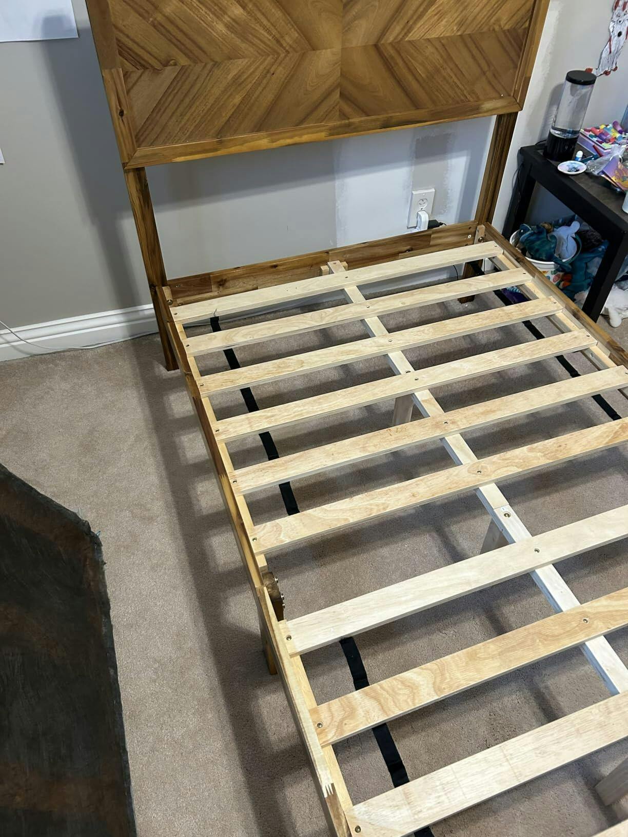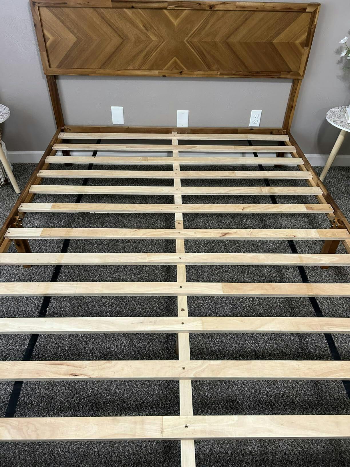 No box spring required with 12 supportive plywood slats for a peaceful sleep