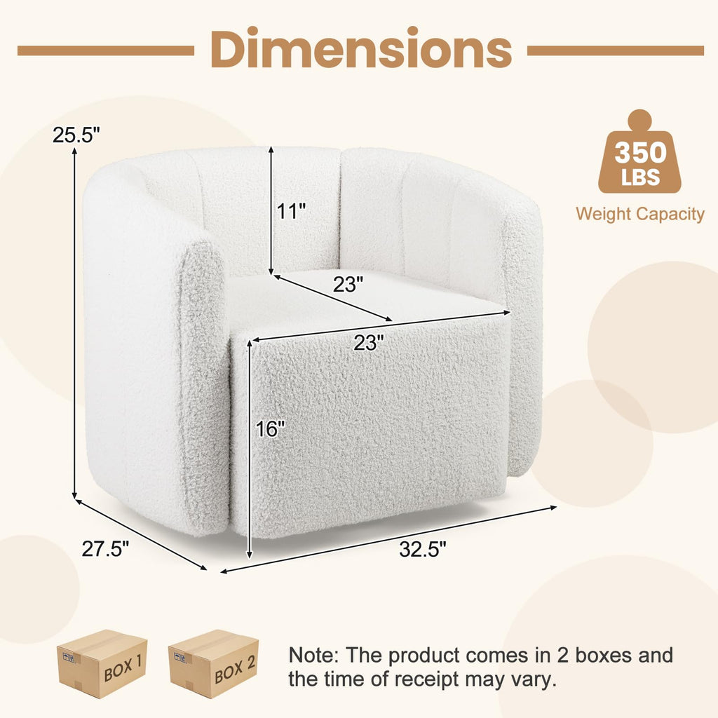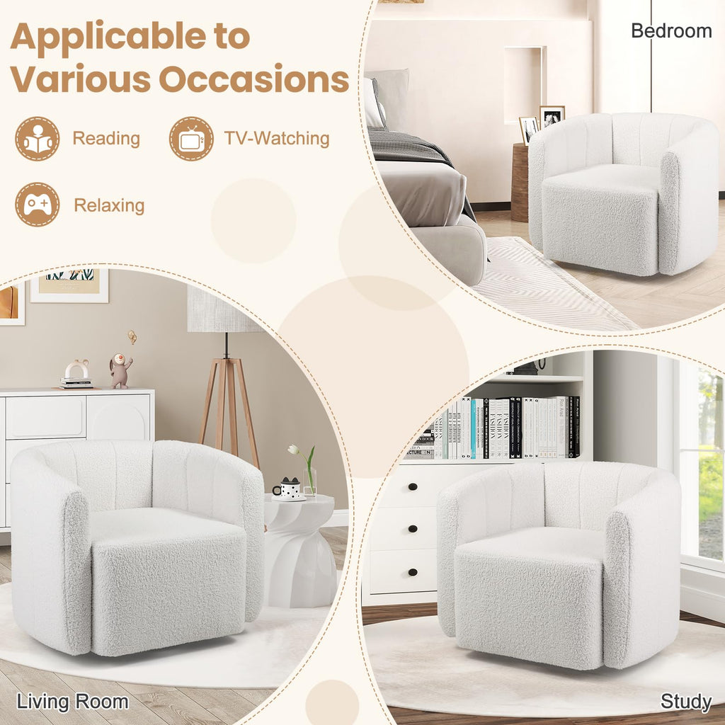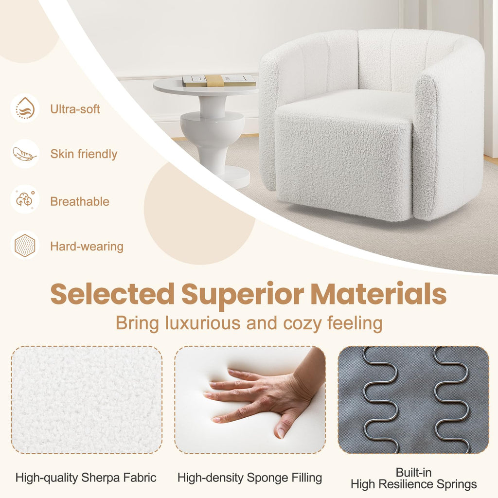 Experience complete freedom and style with our chic swivel barrel chair! This accent chair features a 360° swivel function, allowing you to effortlessly turn in any direction for engaging conversations. The ergonomic backrest and armrests provide support for your posture, making it perfect for relaxation. With a cozy wide seat wrapped in high-density sponge and soft sherpa fabric, this chair promises comfort that keeps on giving. The robust metal swivel base ensures stability, while the stylish pumpkin-shaped design and stripe accent add a touch of elegance to any room. Perfect for the living room, bedroom, or study, this multipurpose chair is ideal for reading, watching TV, or unwinding after a long day. Elevate your space with this comfortable and stylish barrel chair today!