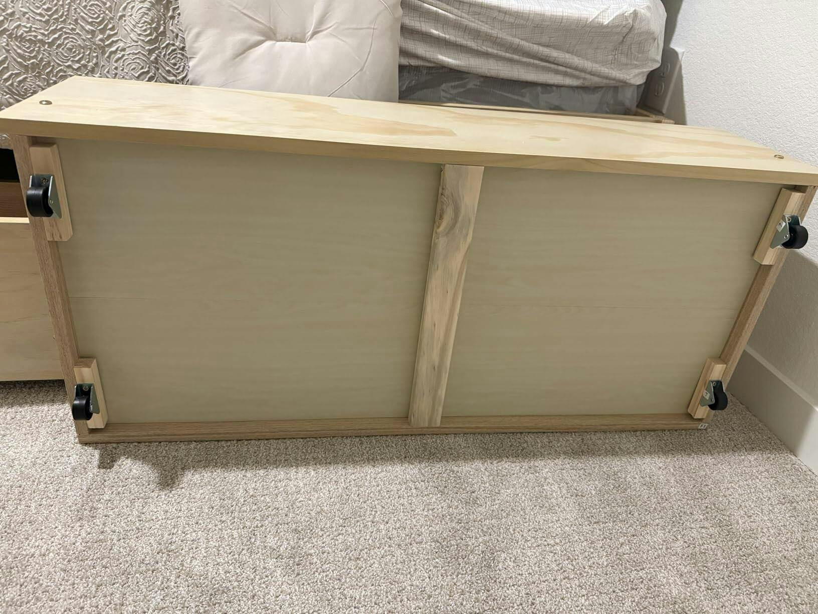 Store books, blankets, clothes, and bedding in the drawers