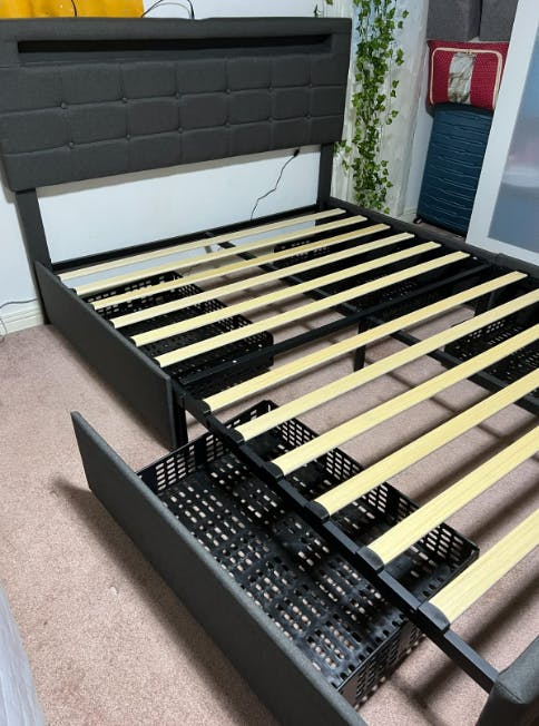 - Practical Bed Frame with 4 Drawers: 4 large drawers underneath the bed frame suit storage needs & improve space utilization, which is convenient to store your out-of-season clothes, bed sheets, books or other sundries. And each drawer is equipped with casters for easy sliding in and out.