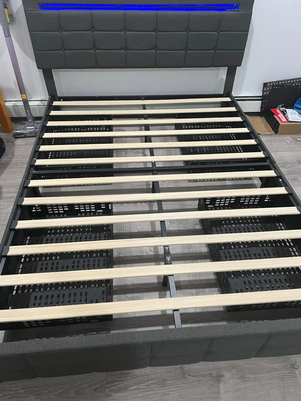 Solid wooden slats provide enhanced support and 880 lbs load bearing