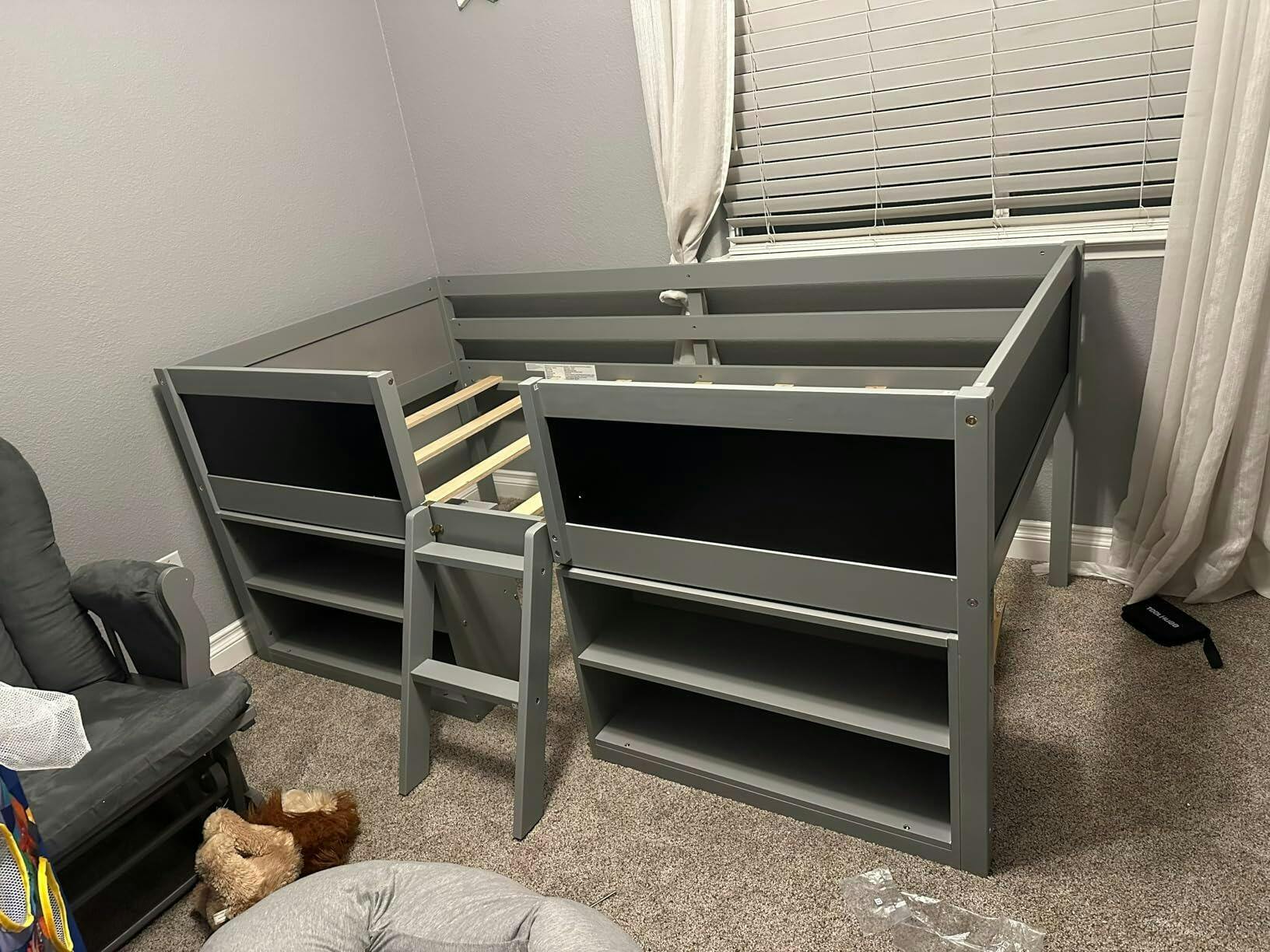 After comparing prices for several beds, this one seemed like the best deal. I recommend having 2 people put it together, but all pieces are labeled well. The under area is awesome for storage. Just got a bunk bed mattress and it works perfect. Great first big bed for my toddler.