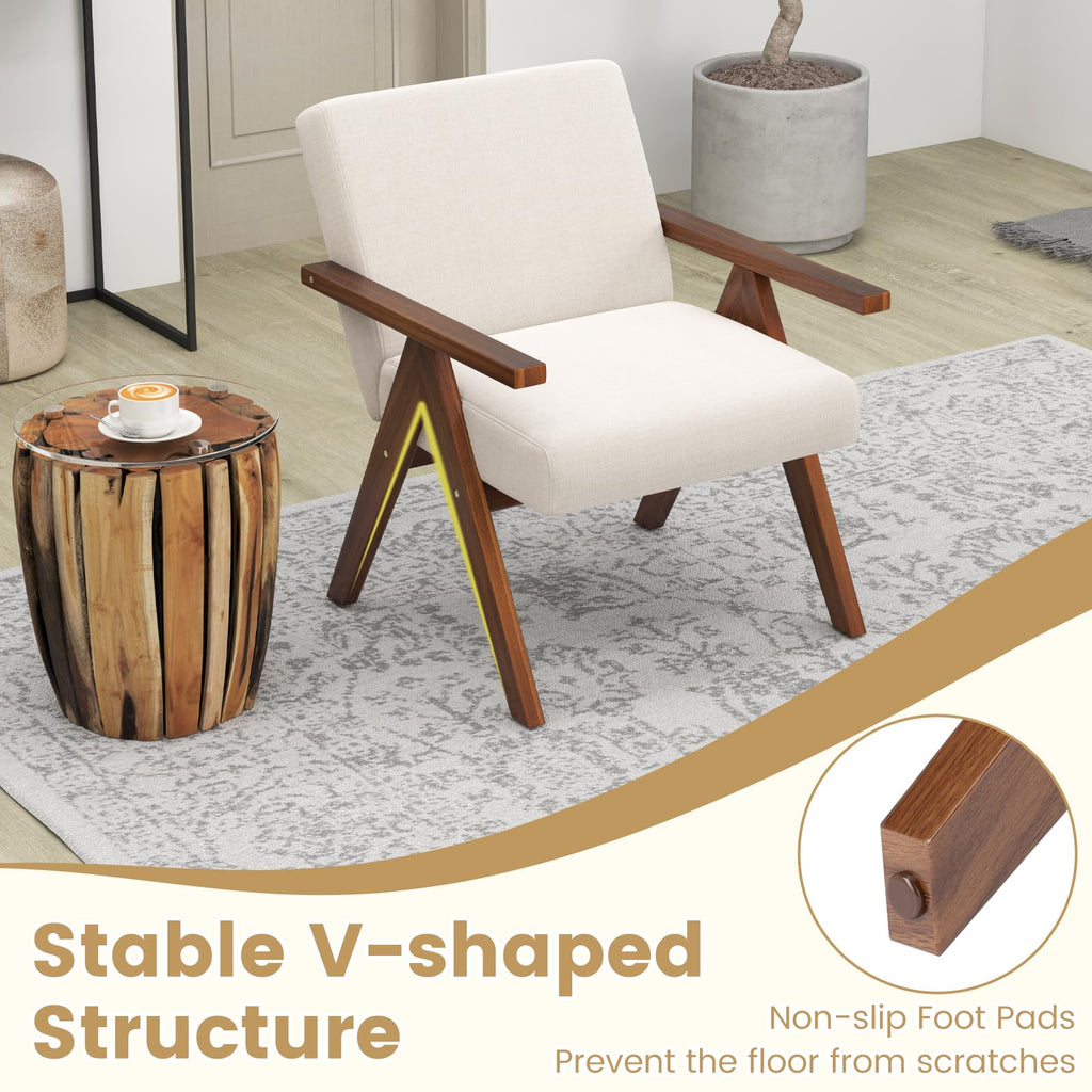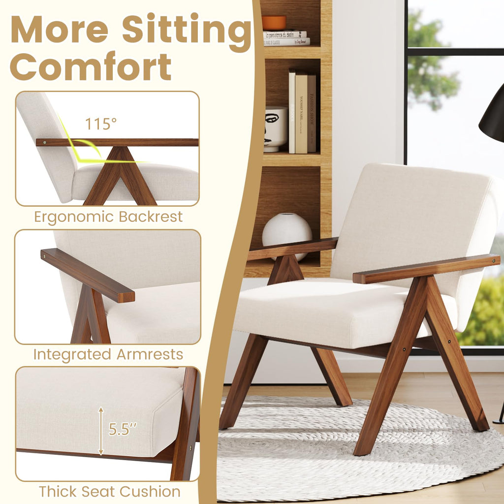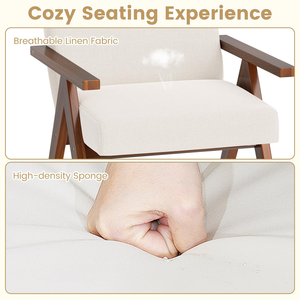 With padded seat and back covered in premium linen fabric, this leisure chair invites you to enjoy long hours of relaxation or reading. The solid acacia wood frame ensures exceptional durability and resistance to crack, making it a reliable choice for any setting. The 115° reclining backrest offers an ergonomically optimal sitting posture, maximizing comfort. Boasting a classic design with sleek lines, this armchair perfectly complements various interior styles. Ideal for your living room, bedroom, or office, this accent chair is the perfect seating solution to elevate your space.