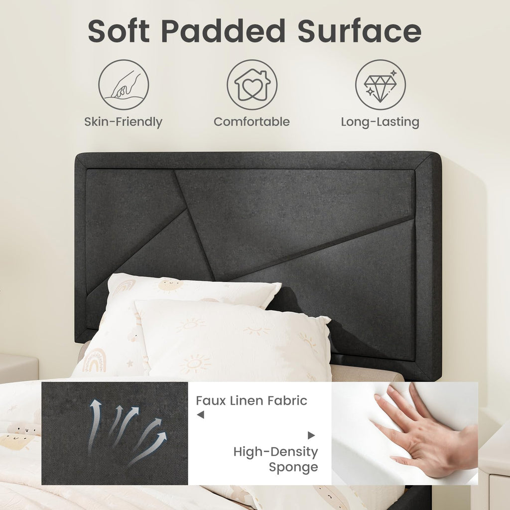 Soft padded surface is made of faux linen fabric and high-density sponge