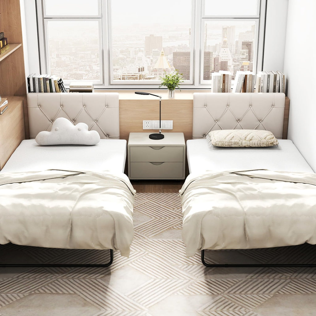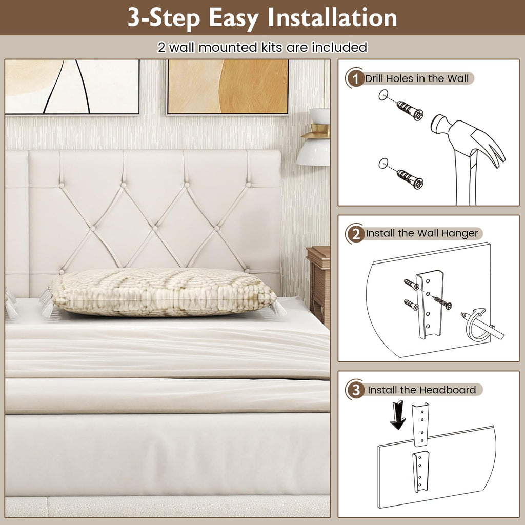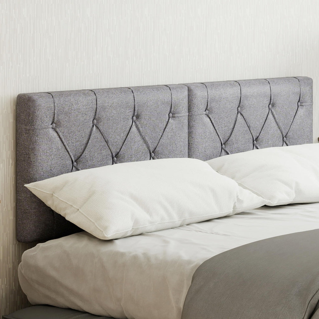Indulge in the luxurious comfort of a chic and modern wall-mounted headboard for twin beds. Made of comfy fabric and cozy padding, this upholstered headboard promises restful nights, while the sturdy MDF board construction ensures stability and durability. Its adjustable height allows for personalized comfort. With 2 included installation kits, setting up this modern headboard is hassle-free. Its versatile design effortlessly complements various bedroom styles.