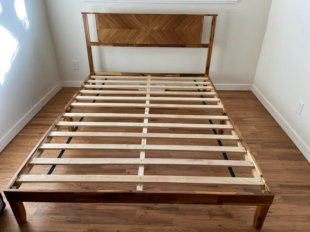 No box spring required with 12 supportive plywood slats for a peaceful sleep