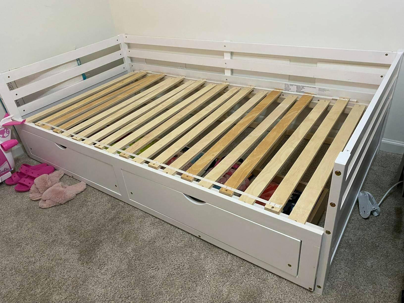 - 2 Under-bed Storage Drawers: This twin to full extend daybed with 2 storage drawers perfectly serves homes with limited storage space. A pair of drawers under the daybed provide ample storage space for your clothes, toys and bedding. Plus, the cut-out handles and smooth slide rails allow for easy pulling.