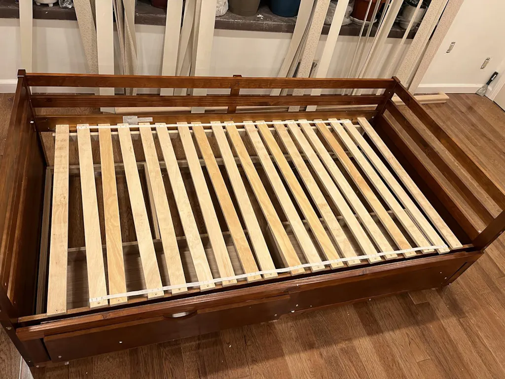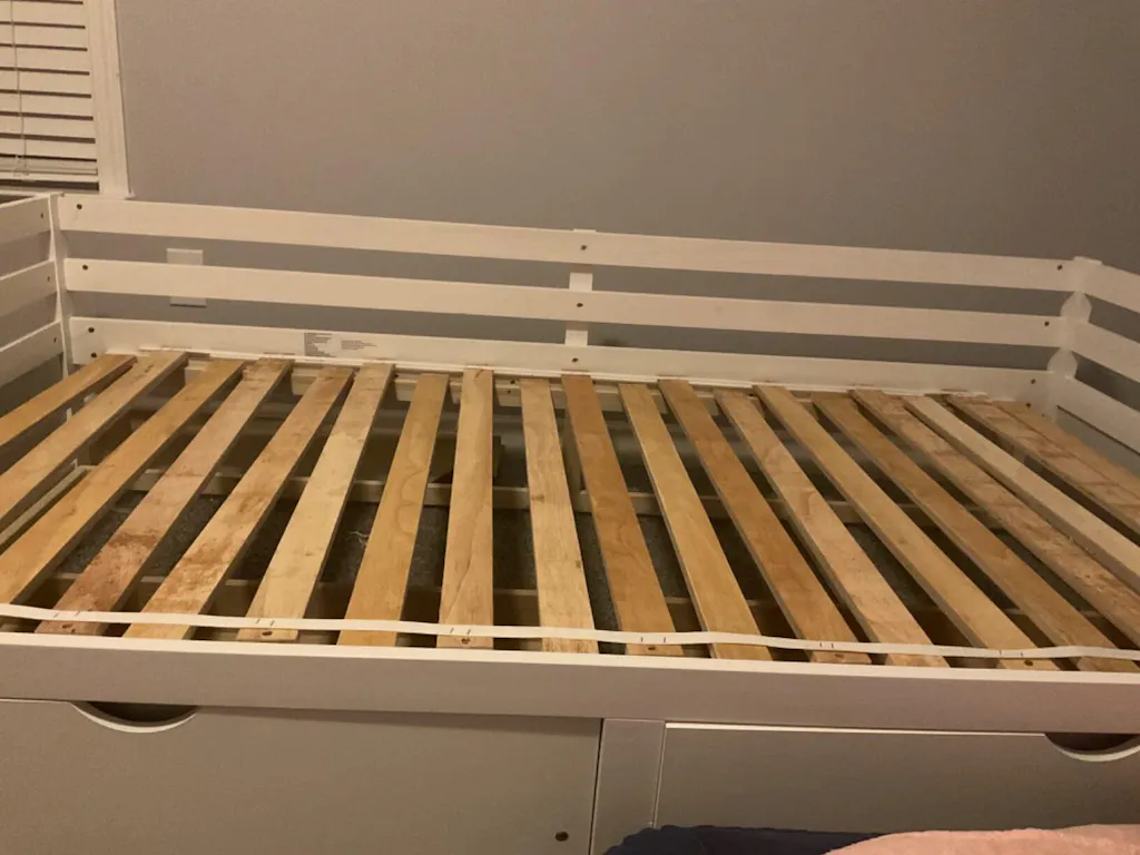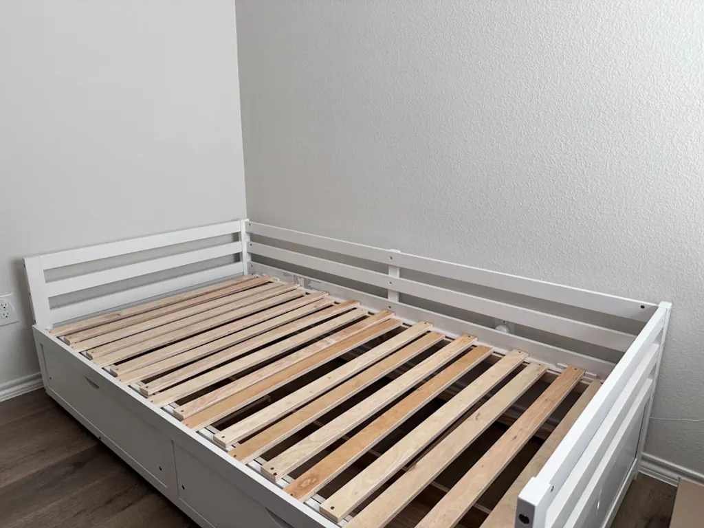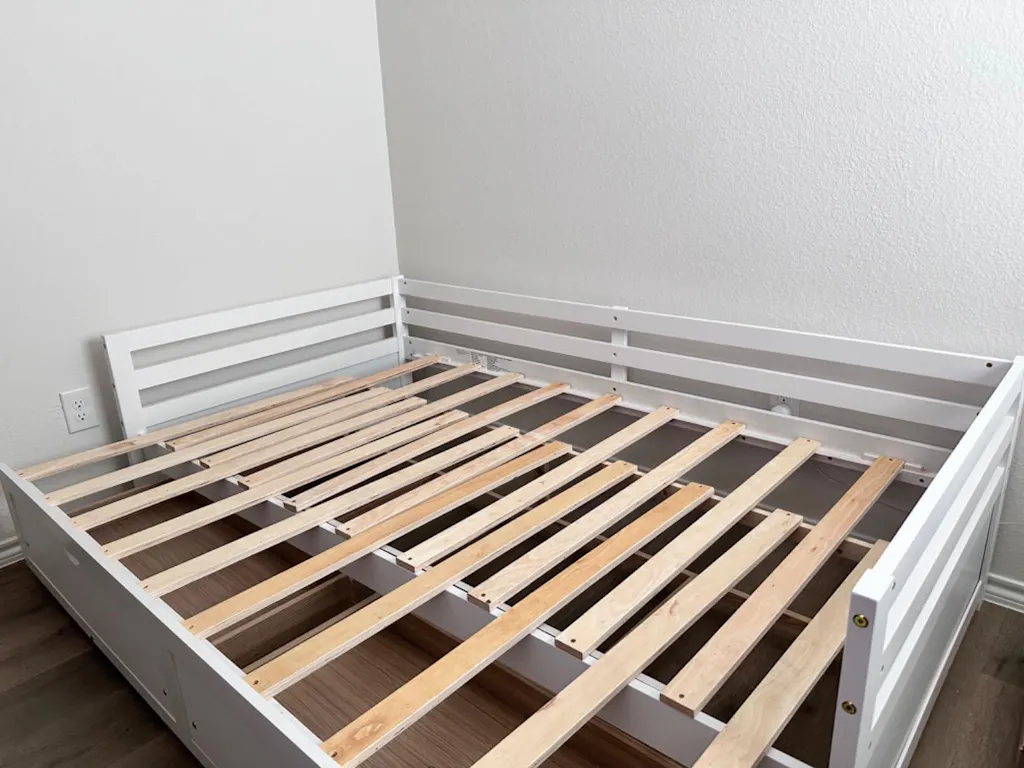 Wooden slats provide support for stable sleeping, no box spring needed