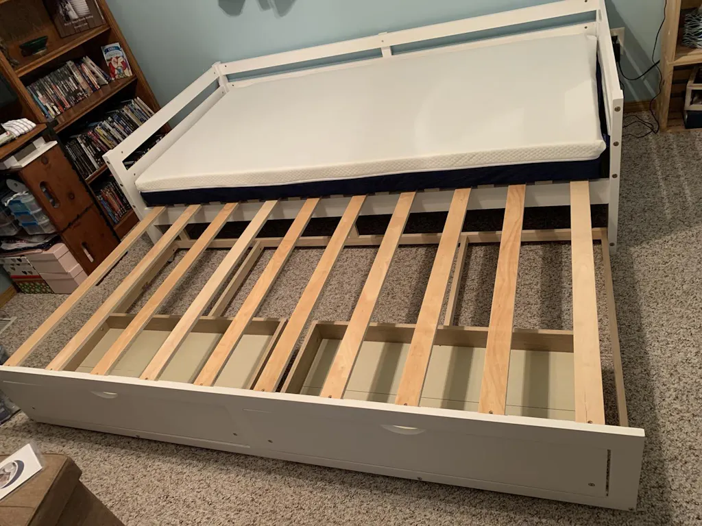 Trundle bed provides sleep space for guest, sleepover and kids