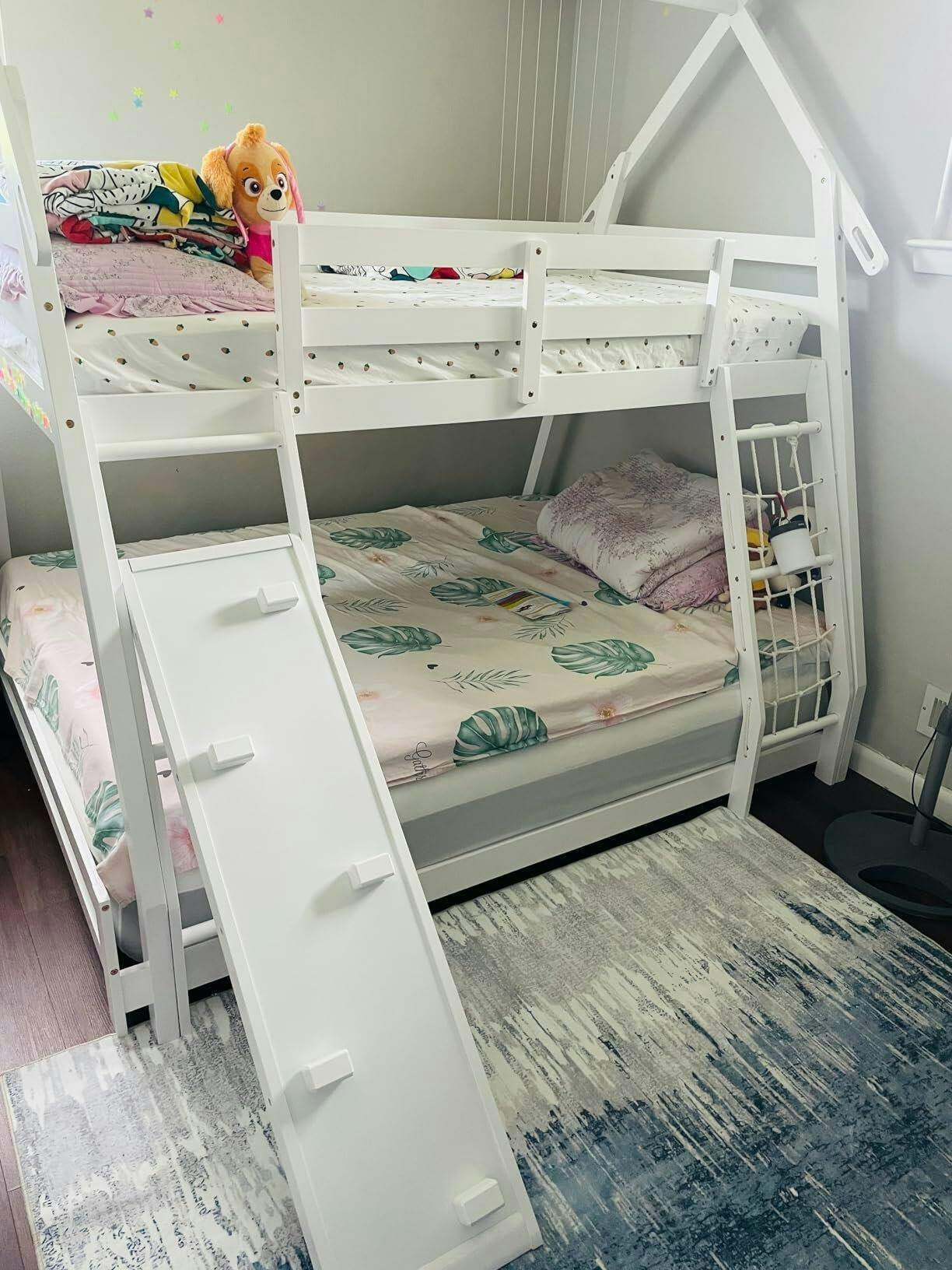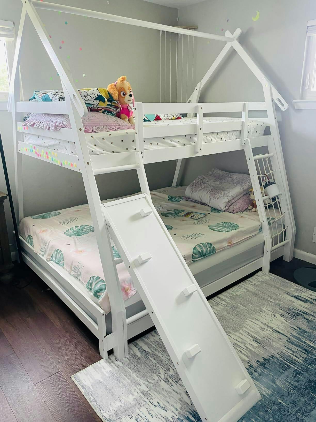 The twin over queen configuration efficiently utilizes bedroom space