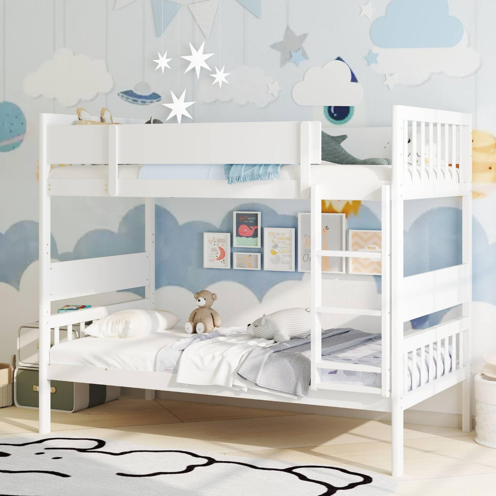 This versatile bunk bed can easily transform into 2 separate twin beds, offering flexibility for changing space needs. With a strong wooden frame and 13 + 13 slats, each bed can support up to 240 lbs. User-friendly features include a 14” guardrail on the upper bunk and a reversible integrated ladder for easy access. The embedded platform eliminates the need for a box spring. To ensure a comfortable sleeping experience, it is recommended to use a mattress with a thickness of less than 6”. Note: The mattress on the upper bed must be at least 5” below the top edge of the guardrail.