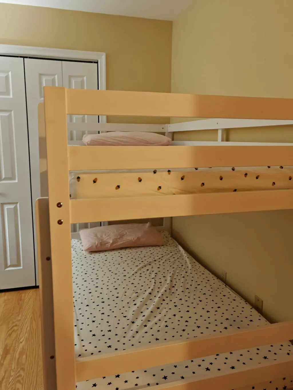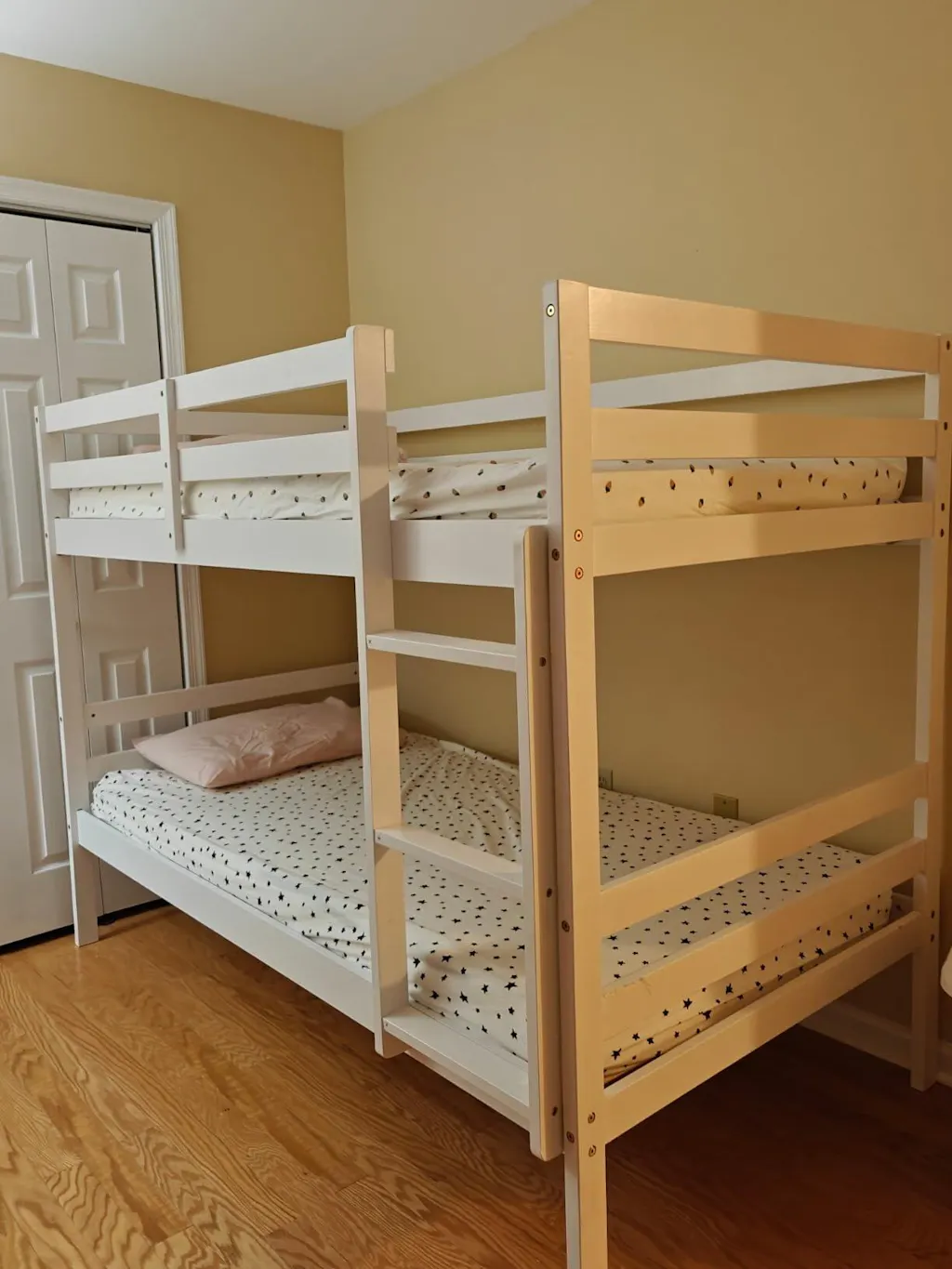 I was a bit nervous about the stability of a wooden bunk bed, but this KOMFOTT frame is very solid. The 3-step ladder is easy for my 6-year-old to climb, and the guardrails on the top bunk are high enough to keep him secure.