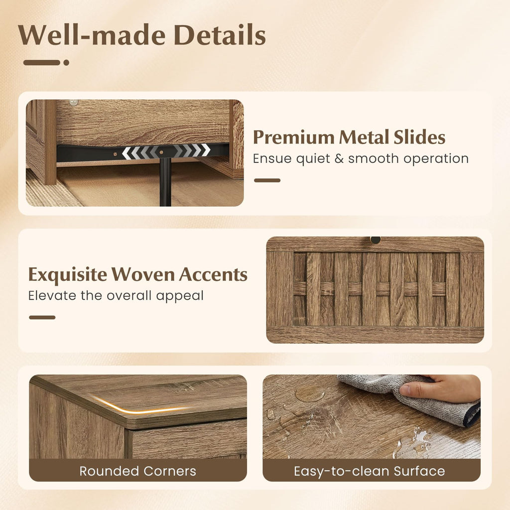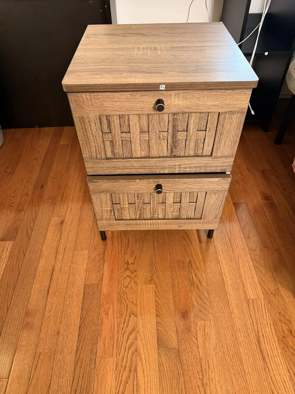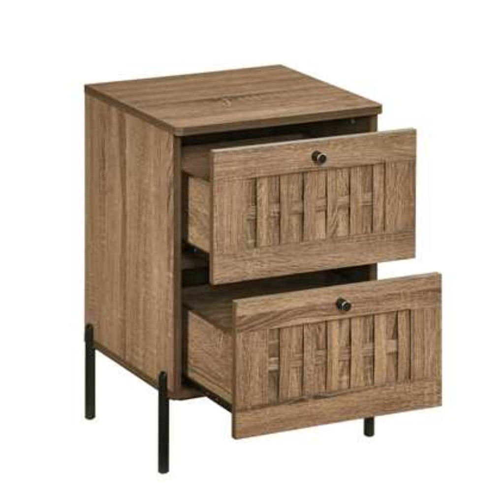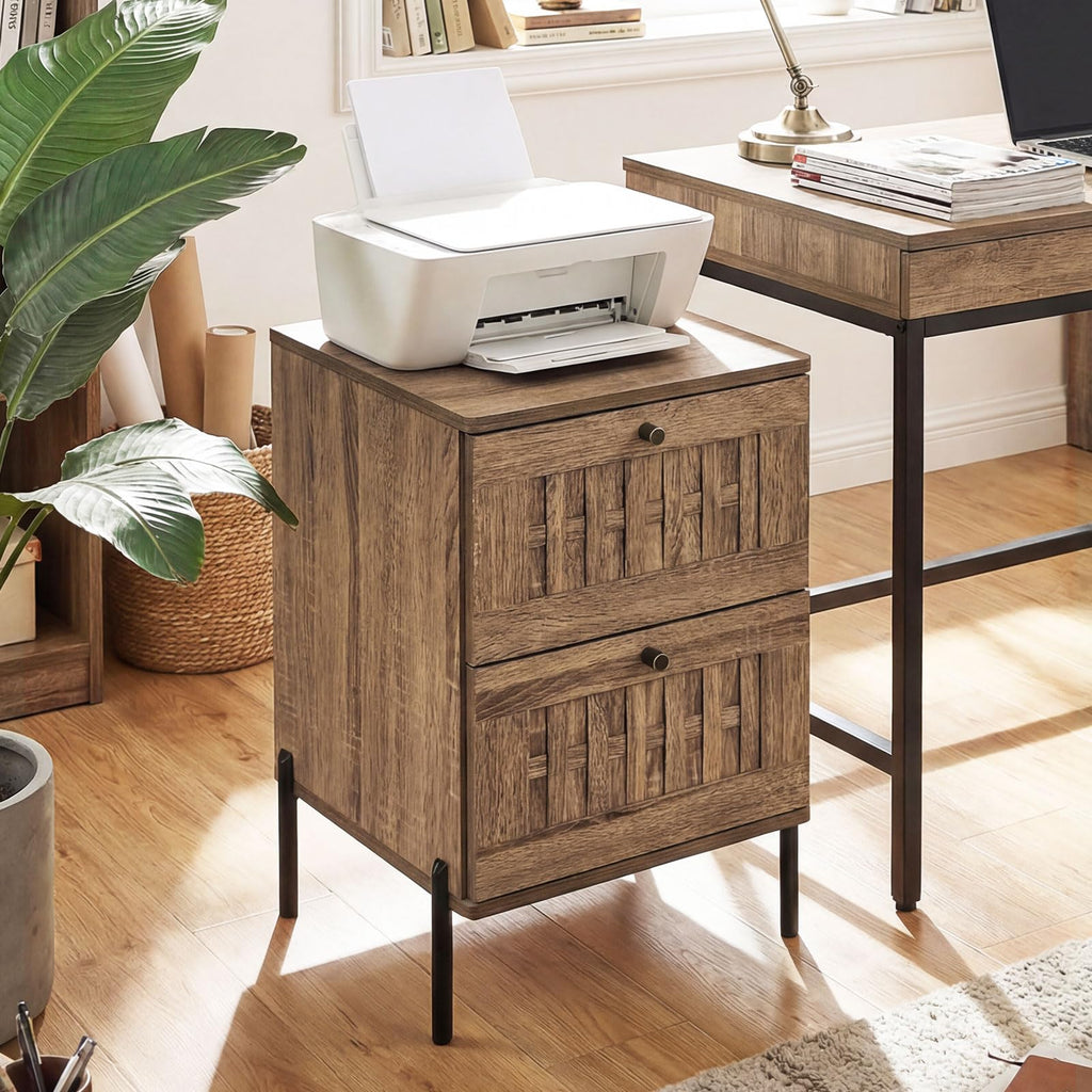 Tidy up your space in style with this irresistibly chic nightstand! Boasting 2 roomy drawers and a spacious top, it keeps all your essentials close and your bedside neat. The eye-catching woven front design and rich wood grain add a splash of luxury that instantly upgrades any room. Supported by sleek metal legs for modern flair and easy cleaning underneath, it’s built for both beauty and everyday convenience. Smooth-gliding drawers, rounded corners, and a fuss-free, wipe-clean surface make this table as practical as it is gorgeous. Its smart, compact size slips effortlessly next to your bed, sofa, or desk, making it a multitasking must-have for any home. Elevate your decoration and banish clutter with this standout nightstand; your stylish space just found its new favorite piece!