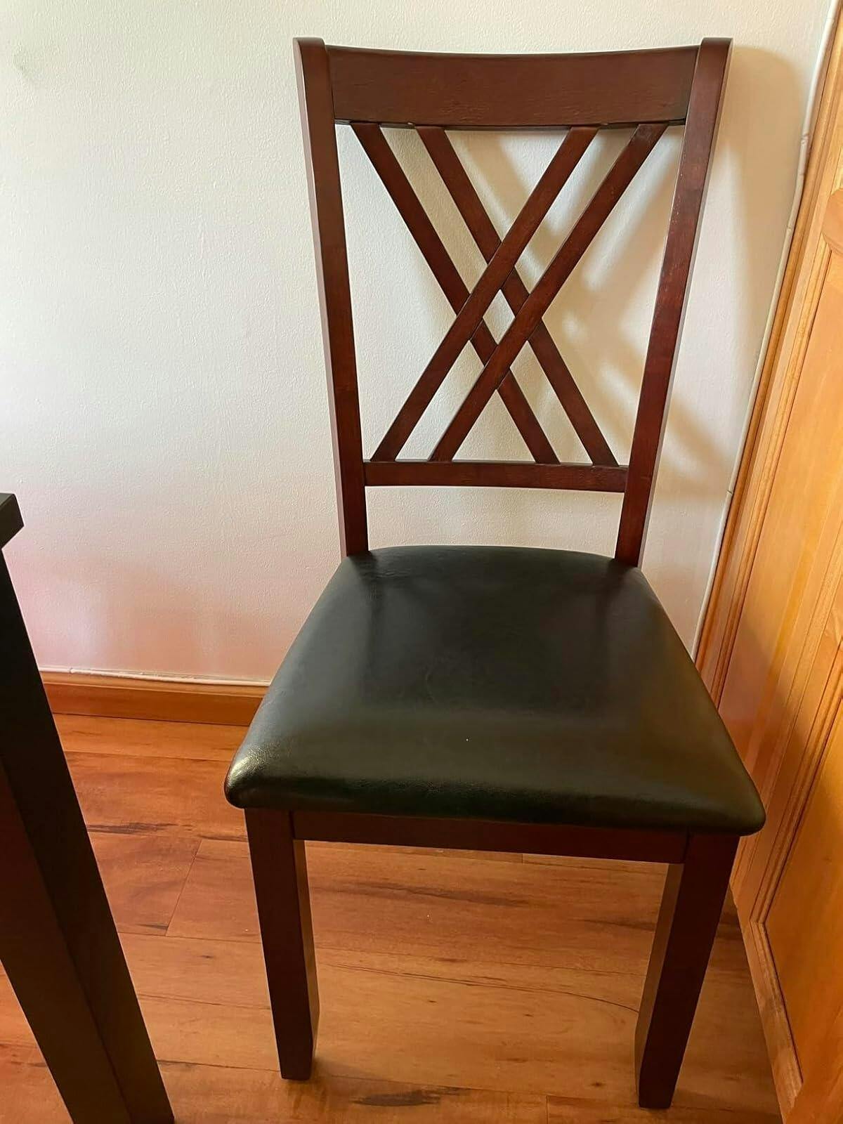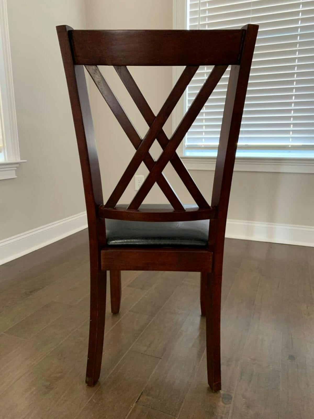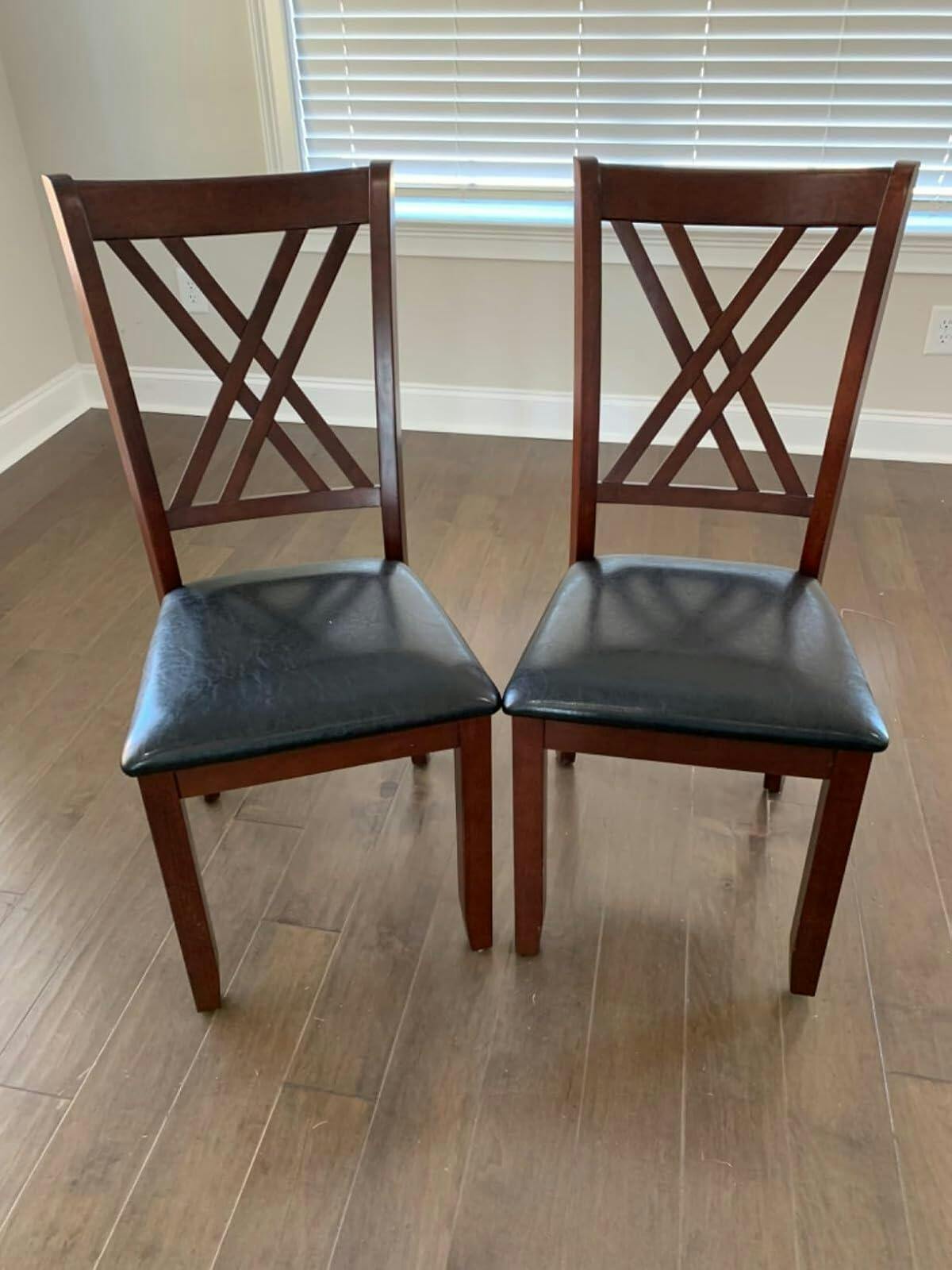What I want to say is that these two dining chairs are really great! The backrest is designed to fit the curve of my back, making me feel comfortable. The seat cushion is also very thick, making it comfortable for me to sit for long periods of time. What I like most is the soft artificial leather material, which is very easy to clean. Leather stays soft when it's cold. The included soft sponge is also of good quality. The stability of the wooden frame allows me to sit my children with peace of mind, and it will not shake or become unstable at all. The anti-slip foot pads are also a thoughtful design, protecting the floor of my home while enhancing the stability of the chair. I have to mention that the retro double X-shaped frame design fits my home style very well and the installation was easy and simple. I didn’t encounter any difficulties at all and the overall size is also ideal. highly recommended!